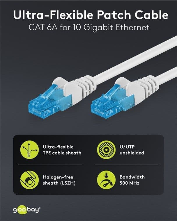 Built for high performance networking, this Cat6a cable supports reliable speeds up to 10 Gigabit Ethernet, making it ideal for streaming, gaming, home working, and demanding network environments.