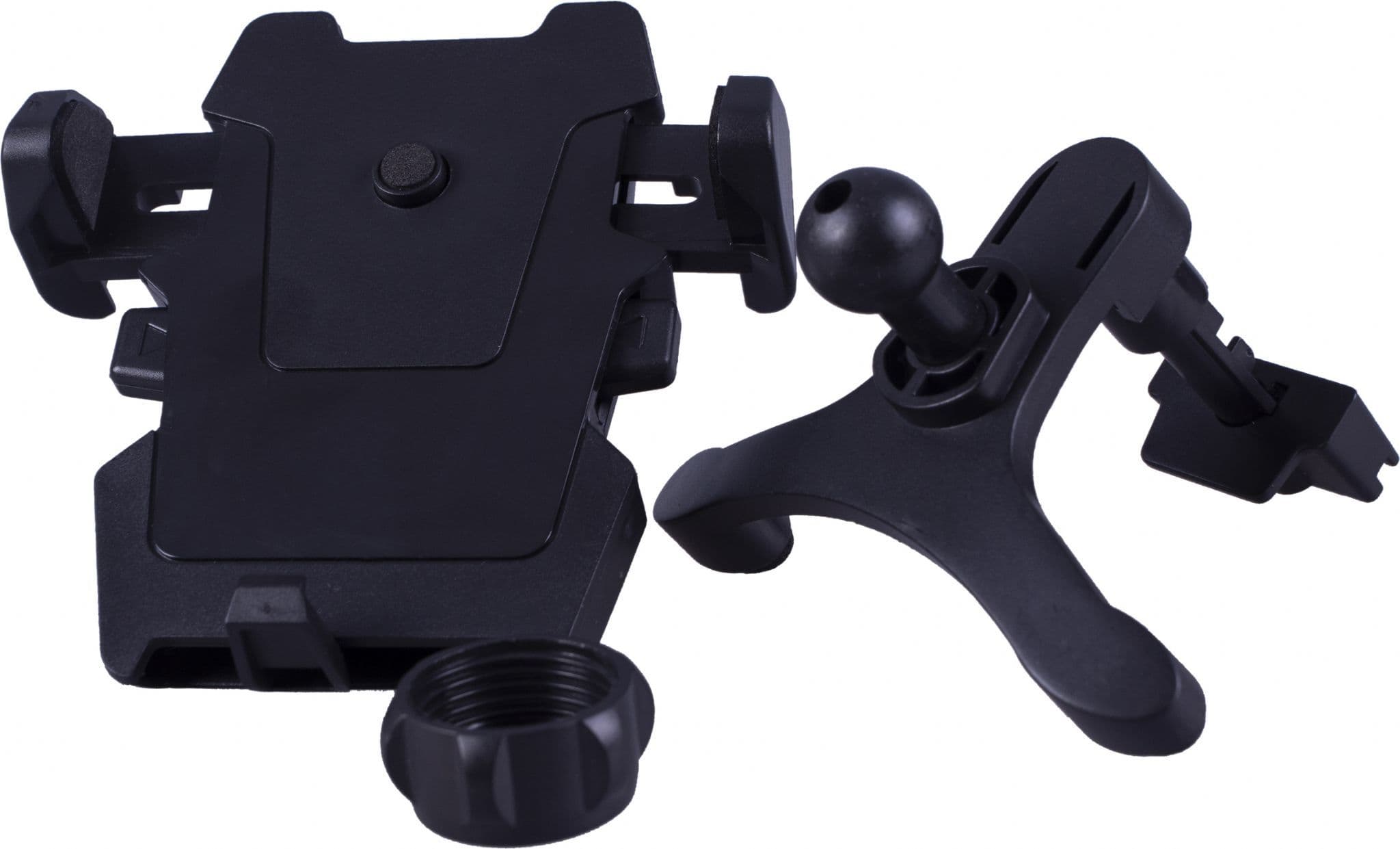 The spring-loaded clamp design means it will fit the majority of smartphones. Simply press the release tabs to open the holder, place your phone inside, and as you push the phone back the side arms automatically clamp firmly around it. The holder also features a 360-degree swivel ball joint, allowing you to adjust and rotate your device for the perfect viewing angle — ideal for navigation and hands-free use.
