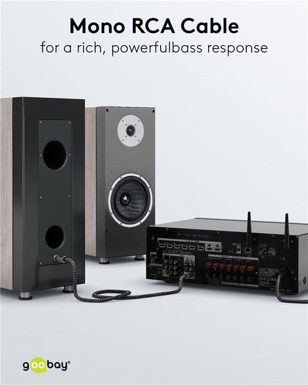 This single 3m RCA Lead for subwoofer connectivity is a premium type cable specially tailored for the low frequency signals of subwoofers, It provides a rich and powerful bass and an impressive music and movie experience, It's a mono RCA cable and can be used to connect TV's, home cinema systems subwoofers, receivers etc. The cable is designed for frequencies up to 100Hz, It has slim metal plugs with bend protection and a braided textile outer jacket.